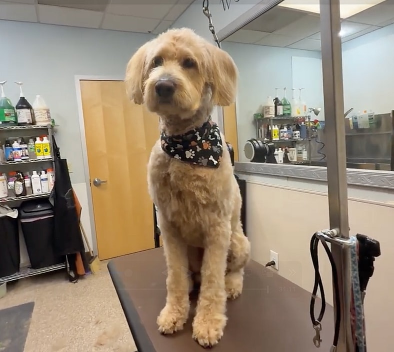 The before: a frozen, matted creature who couldn’t lift his head. The after: a bright-eyed, soft-coated, bandana-wearing doodle who looked ready to take on the world. The floor of the grooming room was covered in what looked like an entirely separate dog’s worth of fur.