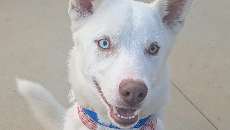 Meet Pollock, an 11-month-old Husky mix with a coat as white as snow and the kind of eyes that stop you in your tracks—one sky blue, one soft green. This handsome young pup came in as a stray on 1/17/2026 and has already captured hearts with his gentle, playful personality. Though he’s been returned, Pollock hasn’t lost his enthusiasm for people, other dogs, or life—he’s still eager to find his perfect forever family!