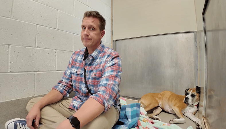 Kelly joined me briefly so Syndey could get used to more than one calm presence. Even that small change was a lot for her. This is what people don’t see when they scroll past a kennel photo. For some dogs, just existing in this environment takes everything they have.
