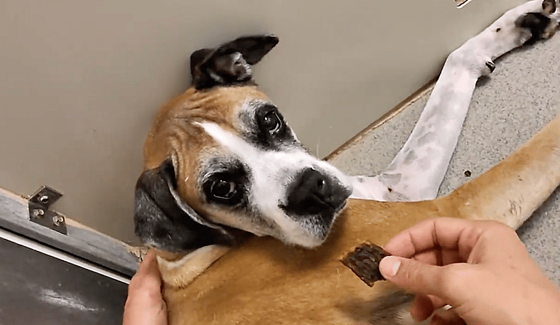 I worked slowly, watching Syndey’s body language and backing off when she needed space. Each treat helped her nervous system settle a little more. She was still jumpy. Still tense. But she was no longer frozen.
