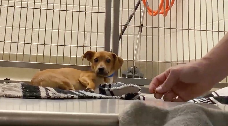 “He’s scared, but he’s trying,” Rocky observed. “At five months old, he has every chance to come out of this with the right adopter.”