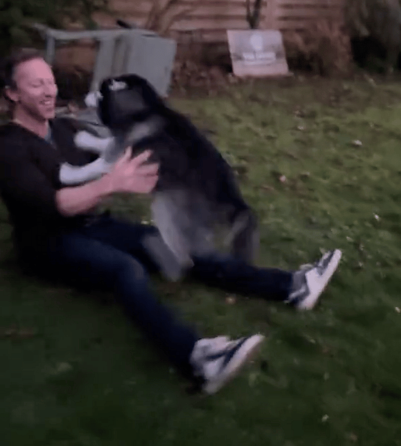 Immediately the door opens, Loki sprints across the garden at lightning speed toward his dad and leaps onto him with great force, making him fall backwards in laughter. And as he jumps on his dad again and again with zero restraint, something else magical happens: he turns into a spinning machine. Loki repeatedly spins around in joy; you’d think he’s attempting to make himself blur.