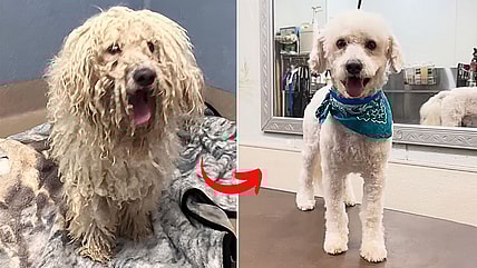 Cole, a Poodle in unbearable pain from matted fur, transformed after a life-saving grooming session. Discover his incredible journey from…