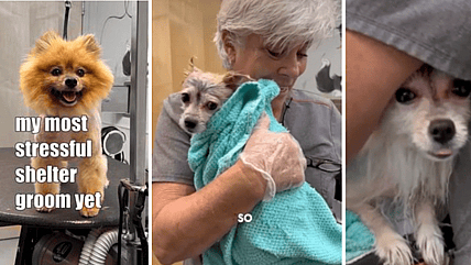 Discover the heartwarming journey of a neglected Pomeranian's transformation at a shelter thanks to dedicated grooming.
