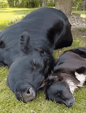 Sarge no longer sees Daisy as a cow to herd. These two have become inseparable besties, so much so that they spend almost all their time hanging out. The TikTok video, posted by Sarge’s mom @dakotafunnyfarm, captures Sarge & Daisy taking naps on the field side by side, licking each other affectionately, and sitting close together as they watch the world go by.