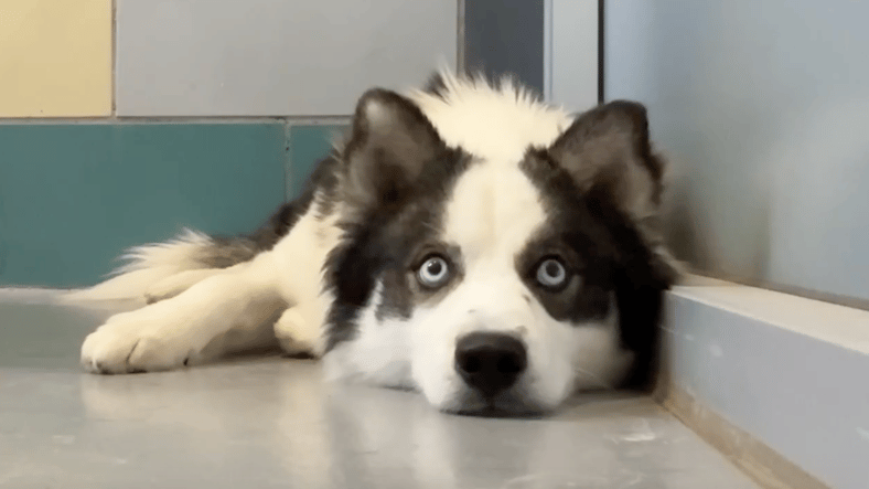 His breathing was heavy, his paws—giant puppy mittens—shook under him. But those alert herding-dog eyes told me he wasn’t checked out. He was paying attention, just terrified.