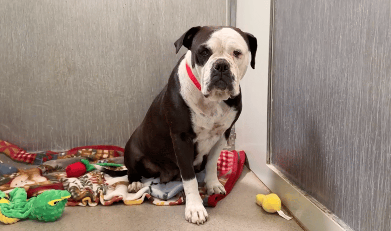 I walked into the kennel row and found a blocky-headed beauty tucked behind her cot, trying to disappear. No kennel card. No info. Just wrinkles, worry, and a pair of eyes that felt 20 pounds heavy. We’d learn later she’d arrived overnight with a male bulldog found running near the Lake Elsinore baseball stadium. For now, I sat down on the floor and did what I do—waited, watched, and offered a treat.
