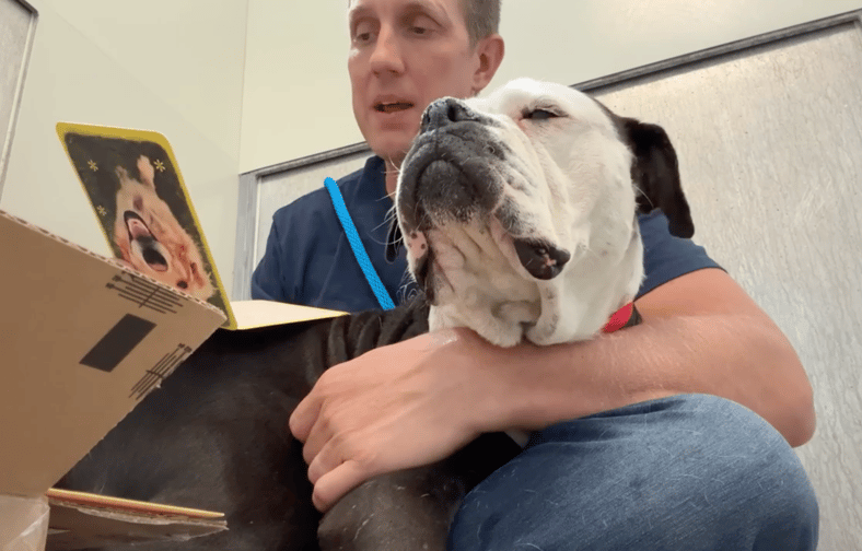 Chelsea lit up. It wasn’t chaos (bulldogs don’t “explode,” they bloom). It was quiet joy: investigating the crinkle, testing the bounce, leaning her big, heavy head into my hand like it weighed a gallon of milk.