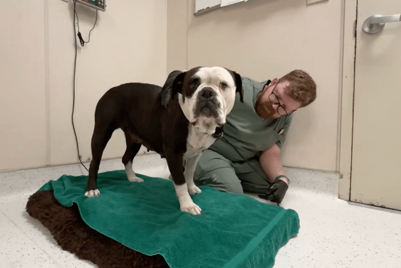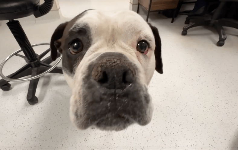 Chelsea’s a squat, sturdy “short-stack”—very likely an American Bulldog mix, and I wouldn’t be surprised if there’s a little English Bulldog in there. Bully breeds wear their history in their wrinkles: the eyebrow lift that takes effort, the bulldozer lean that says “you do the work,” the stubbornness that’s actually courage in slow motion. They’re affectionate, comical, and loyal—but they can be sensitive, especially after trauma.