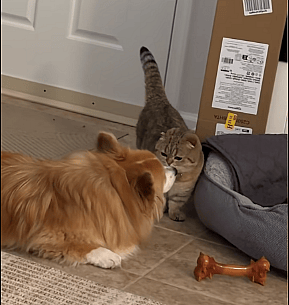 Fiona couldn’t stop licking Nori’s face when she entered the house, and she made sure she stayed right beside her for the rest of the day. What makes this bond more beautiful to witness is that Fiona doesn’t seem to care that Nori, in true cat fashion, isn’t reciprocating the affection. Being reunited with her feline soulmate was all that mattered to her. And even though Nori appears uninterested, the look of contentment on her face says everything: she secretly adores Fiona.