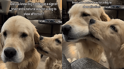 Learn about “cobbing,” the endearing way dogs express love! This Golden Retriever’s sweet moment with their sibling is winning hearts…