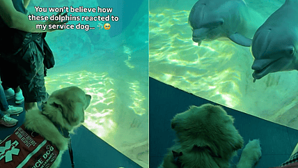 A service dog’s aquarium visit turned incredible when dolphins were instantly captivated by him, creating a heartwarming moment that went…