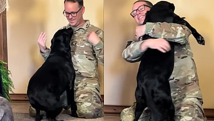 This gorgeous black Lab went blind a few months ago. Her dad left for deployment when she still had her…