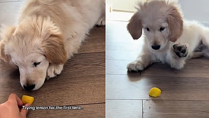 Curious Golden Retriever Sunny tries a lemon for the first time, and his hilarious reaction has TikTok in stitches! Watch…